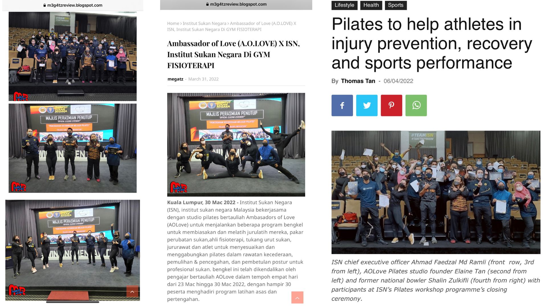 A collaboration between Ambassador Of Love (AOLove) Pilates, Physiotherapy & Fitness Studio and National Medical Team, Malaysia National Sports Institute (ISN)